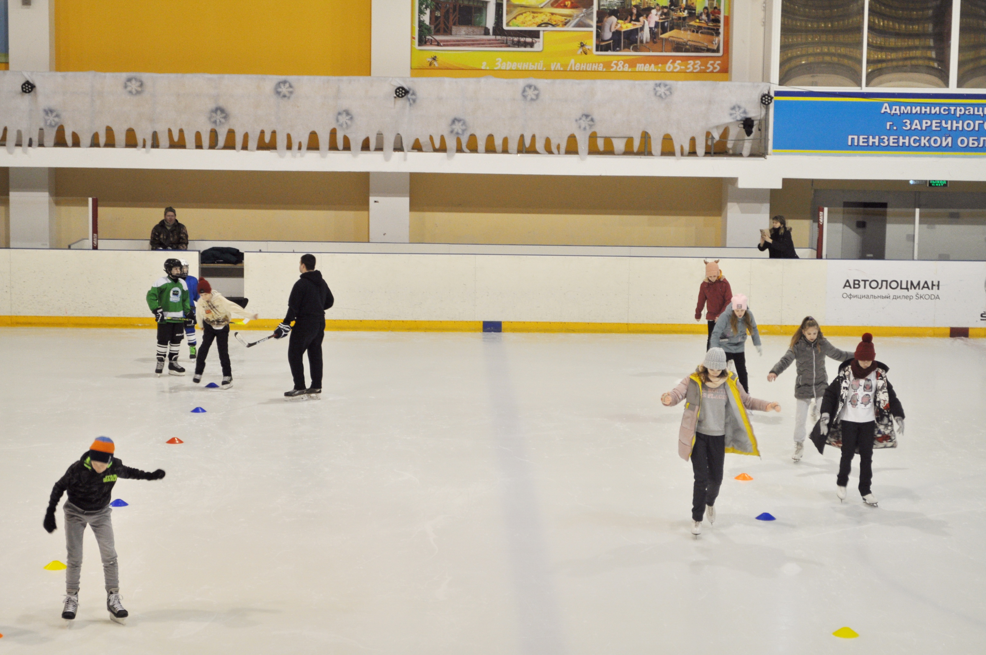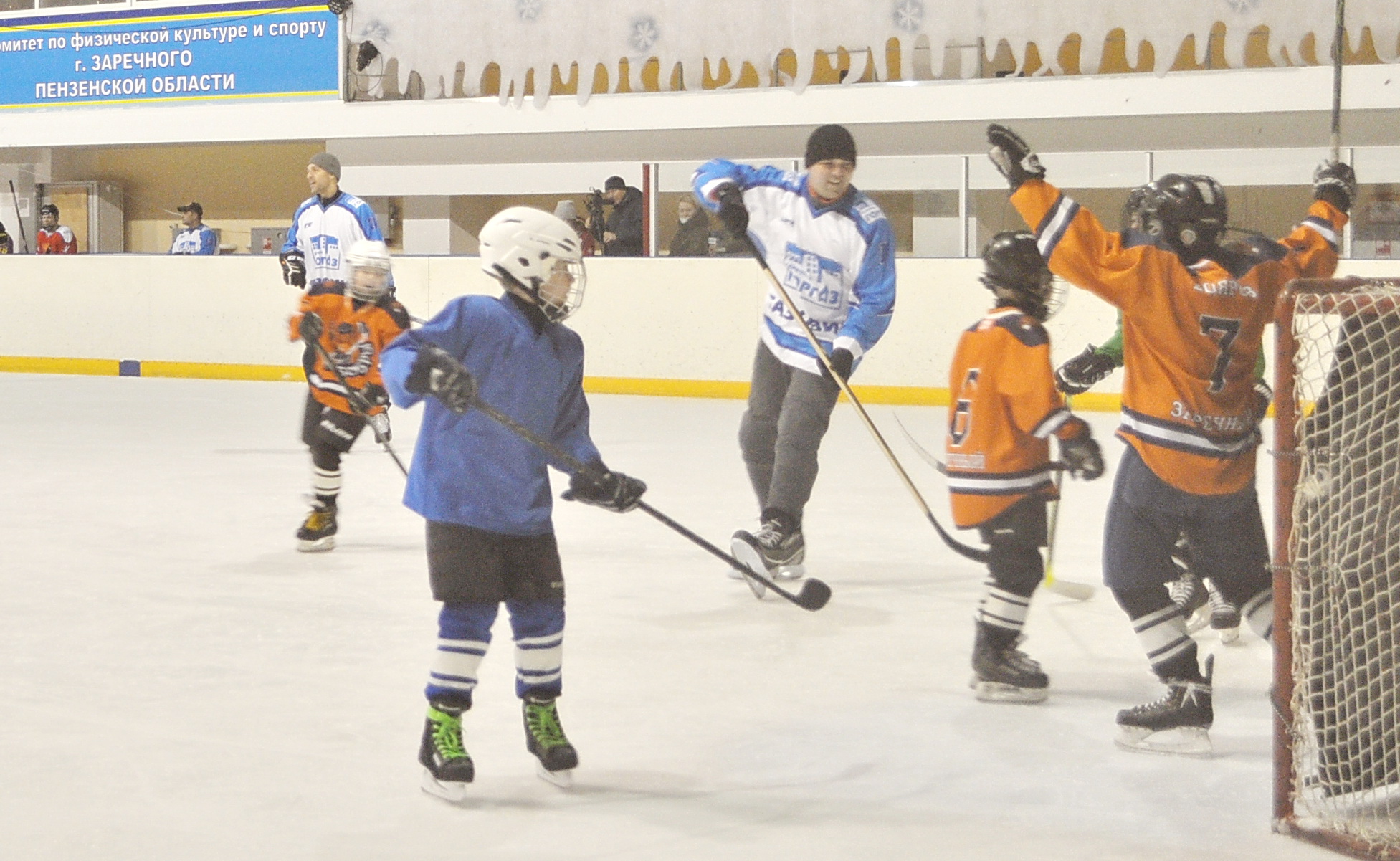 6 февраля с 11.00 до 12.40 час на ледовой площадке МАУ «СКК «Союз» состоялось Спортивно-массовое мероприятие «Открытый лёд» в рамках проведения Дня зимних видов спорта, в программу которого вошли: - мастер- класс по катанию на коньках с детьми и подростками в возрасте от 11 до 13 лет; - товарищеский матч по хоккею «Отцы и дети», среди детей 6-8 лет с участием родителей. Матч закончился со счетом 9:8, победила команда «Дети» В мероприятии приняло участие 140 человек. На празднике присутствовал Председатель Комитета по физической культуре и спорту г.Заречного В.И. Сирюшов, который непосредственно участвовал в мастер –классе по катанию на коньках, а также выступал с приветственным словом перед участниками. Каждый участник мастер-класса по его окончании получил Сертификат о прохождении обучения и подарочный сертификат на бесплатное посещение одного сеанса массового катания. На празднике был организован пункт горячего питания (чай,каша). |